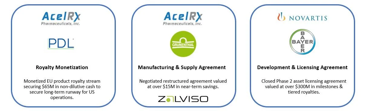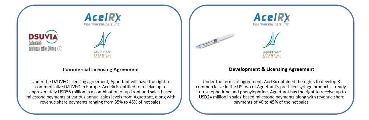 Karana Biotech provided strategic and transactional advisory services to AcelRx for both the Out-licensing and In-licensing transactions.